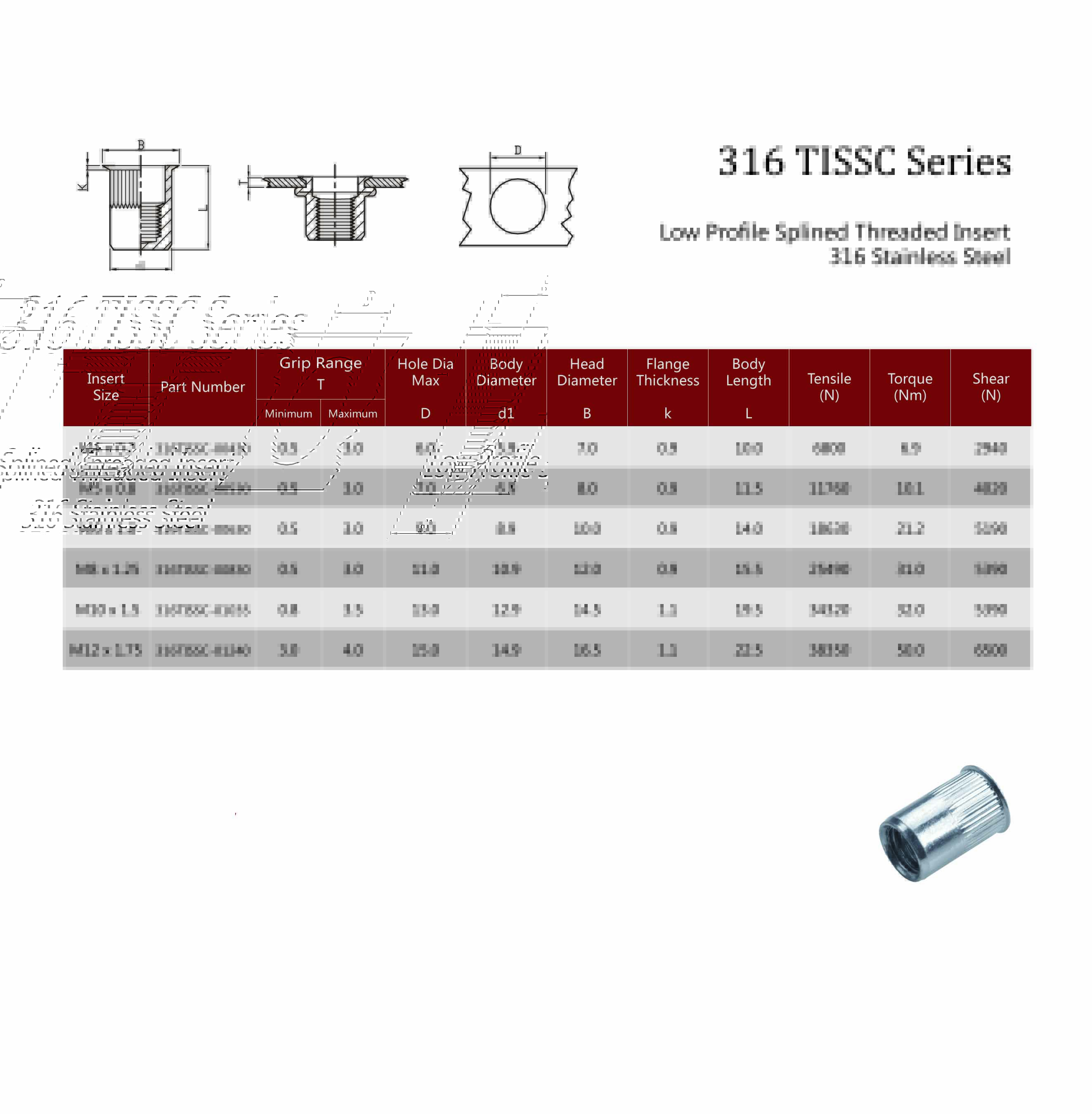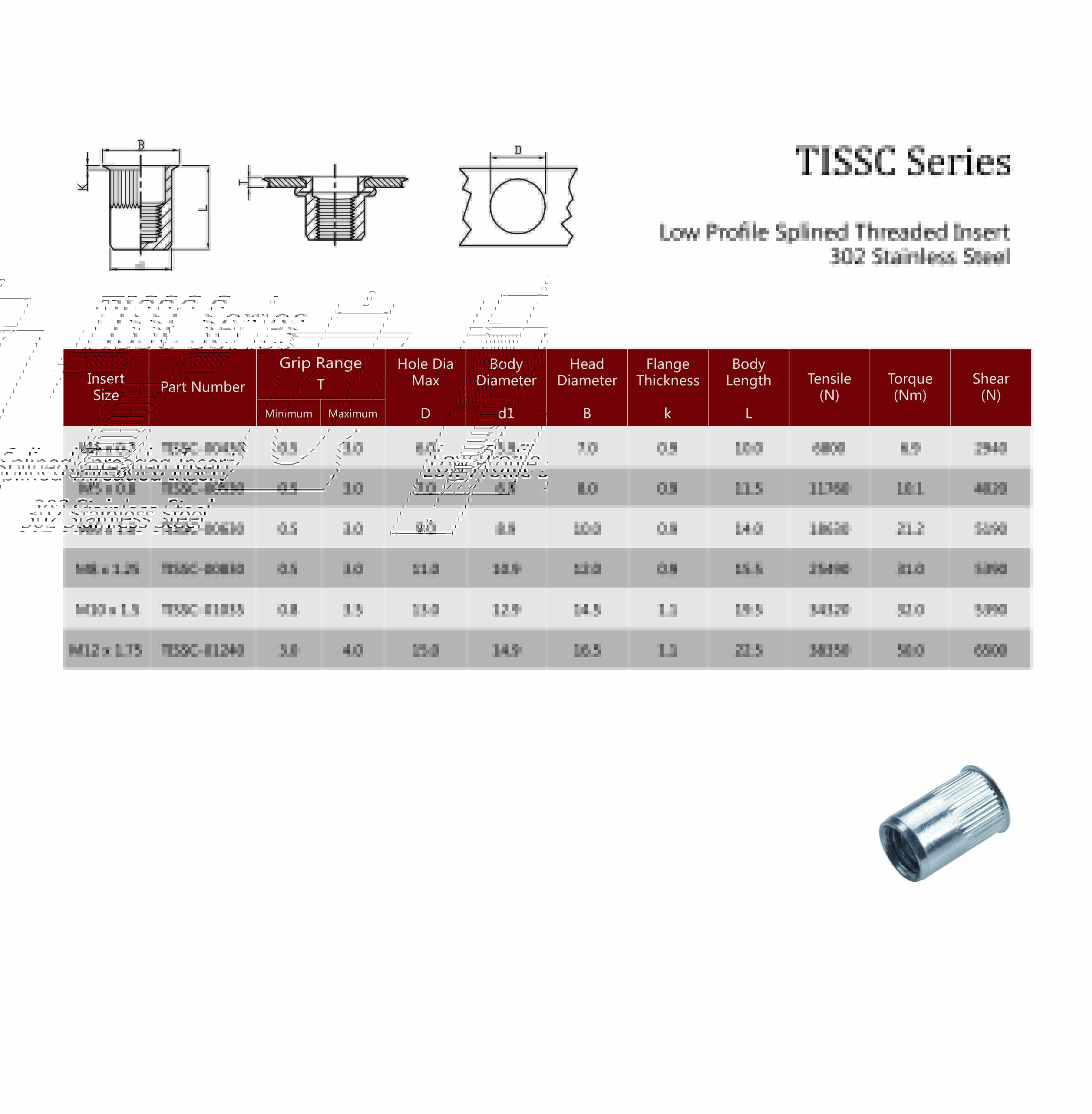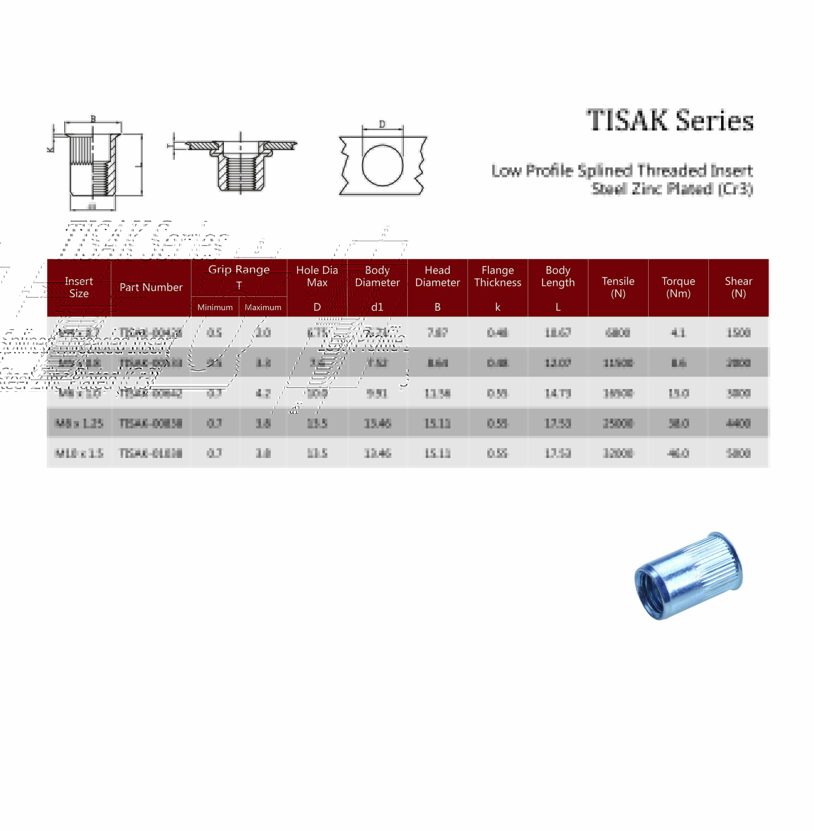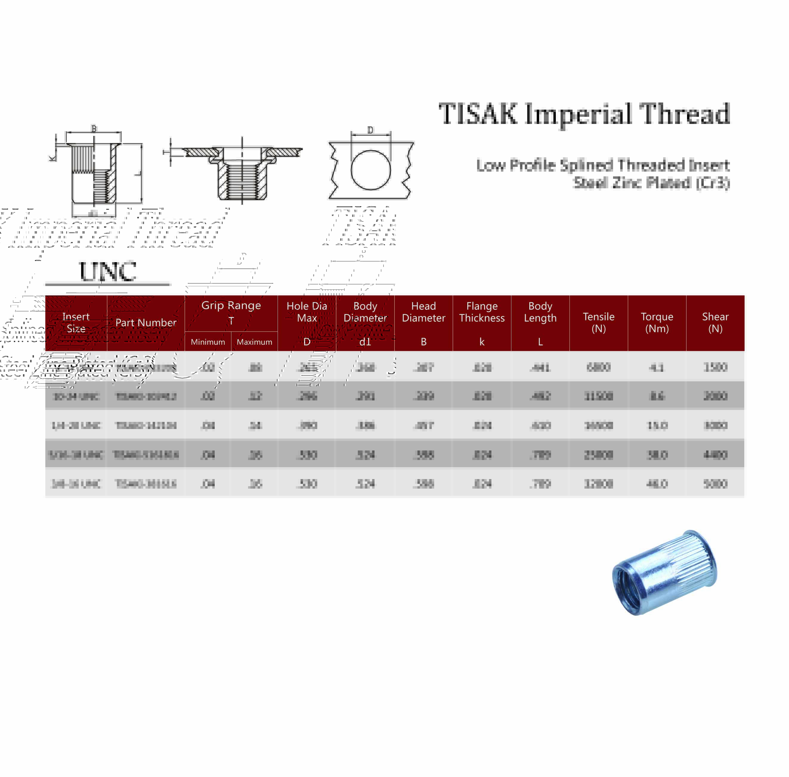 TISAK Imperial Thread / Low Profile Splined Threaded Insert