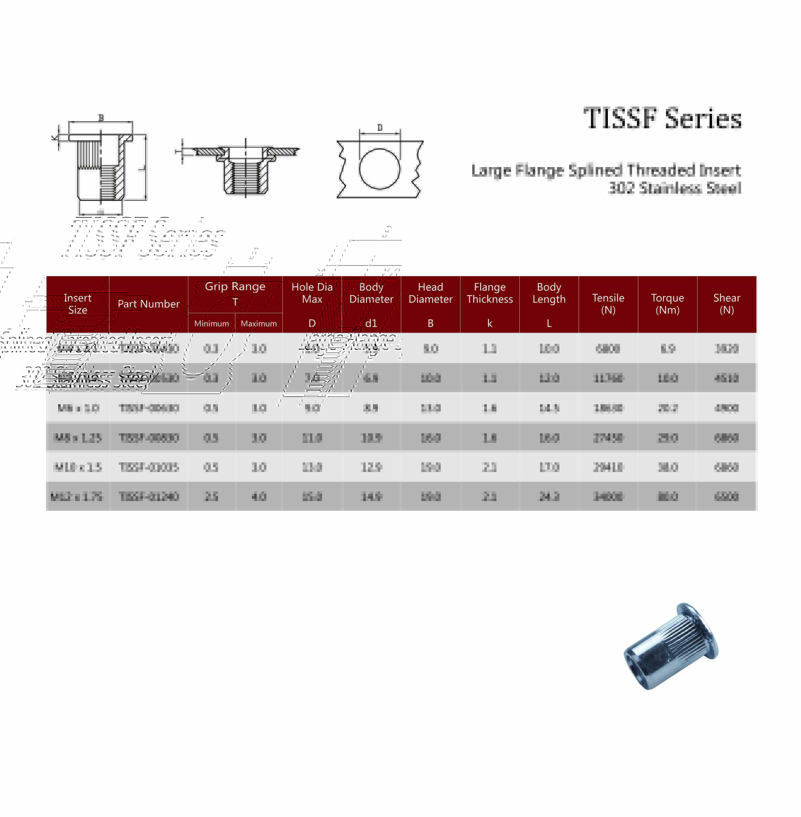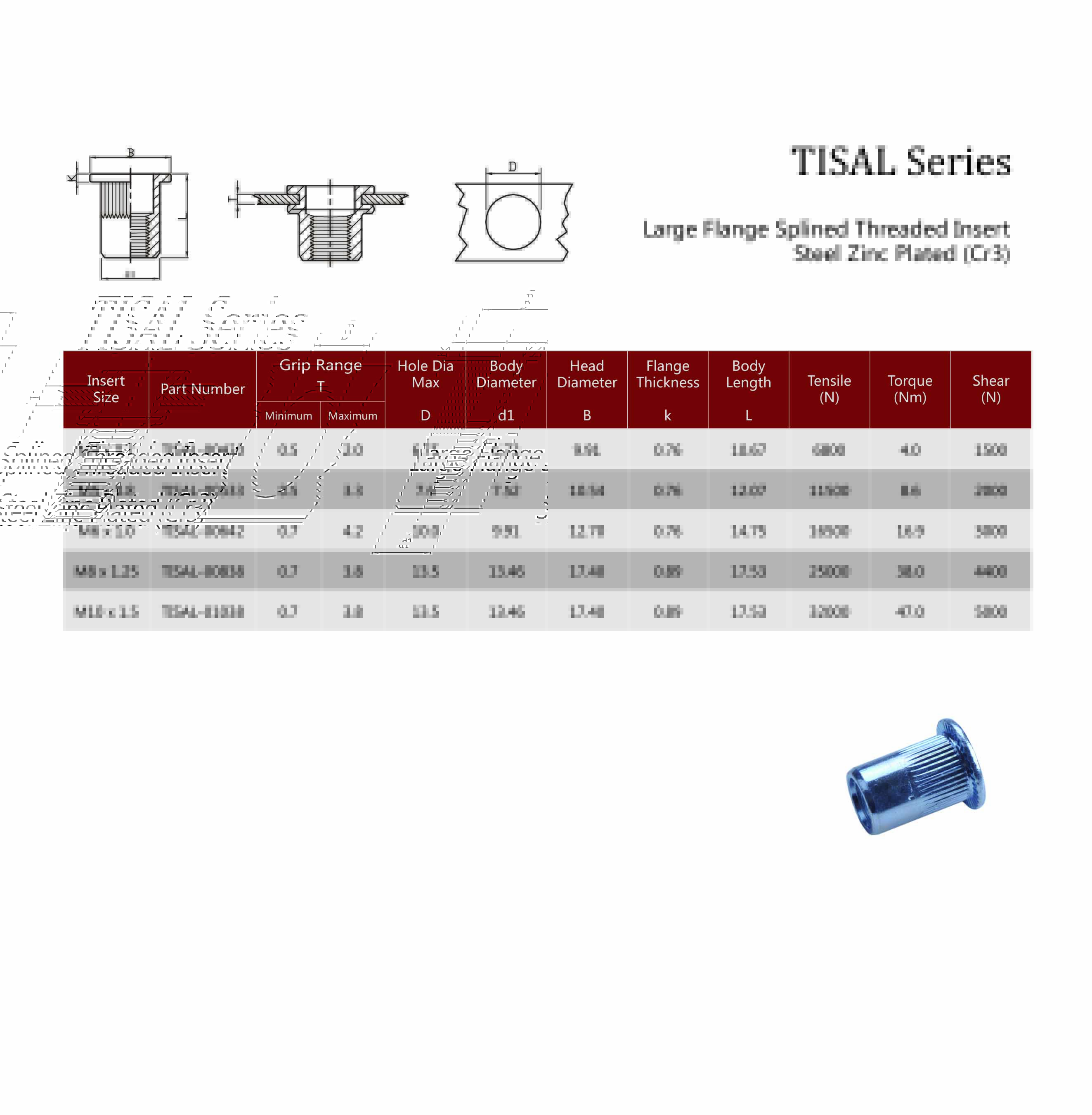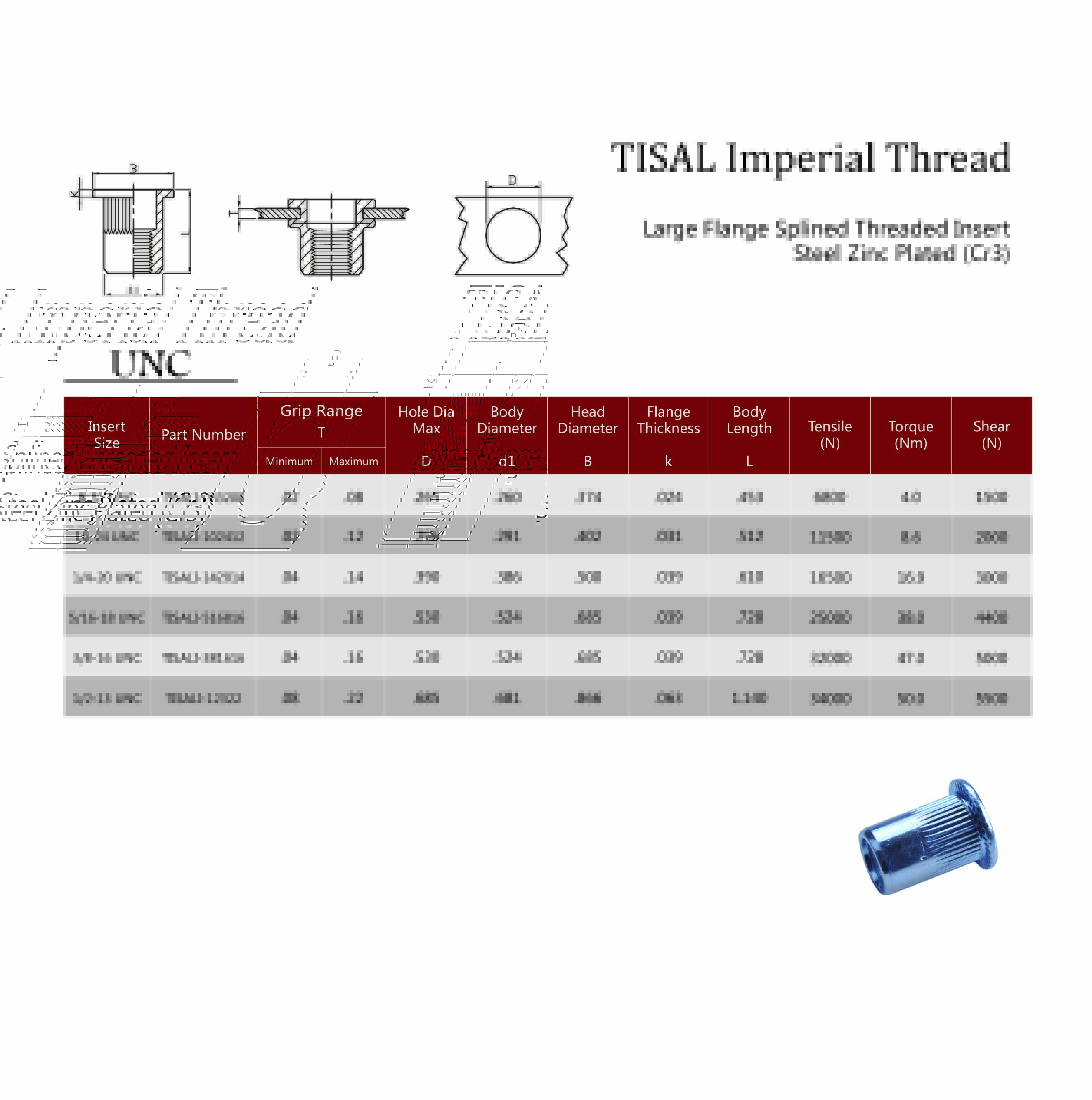 TISAL Imperial Thread / Large Flange Splined Threaded Insert