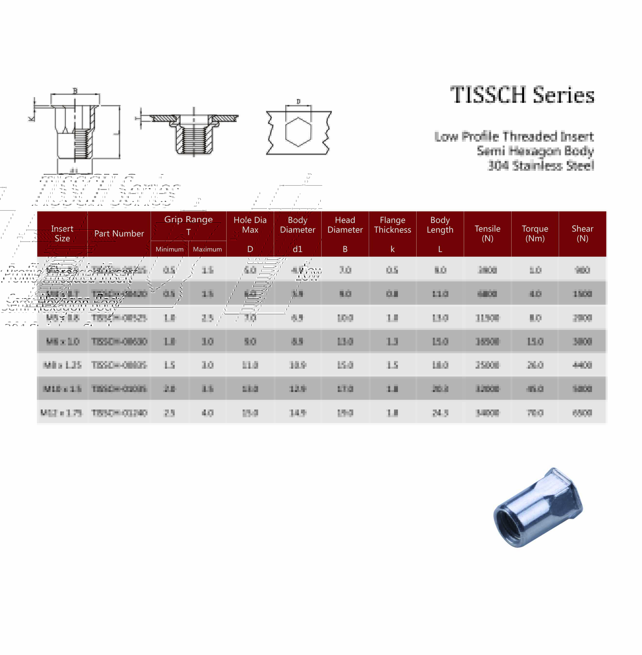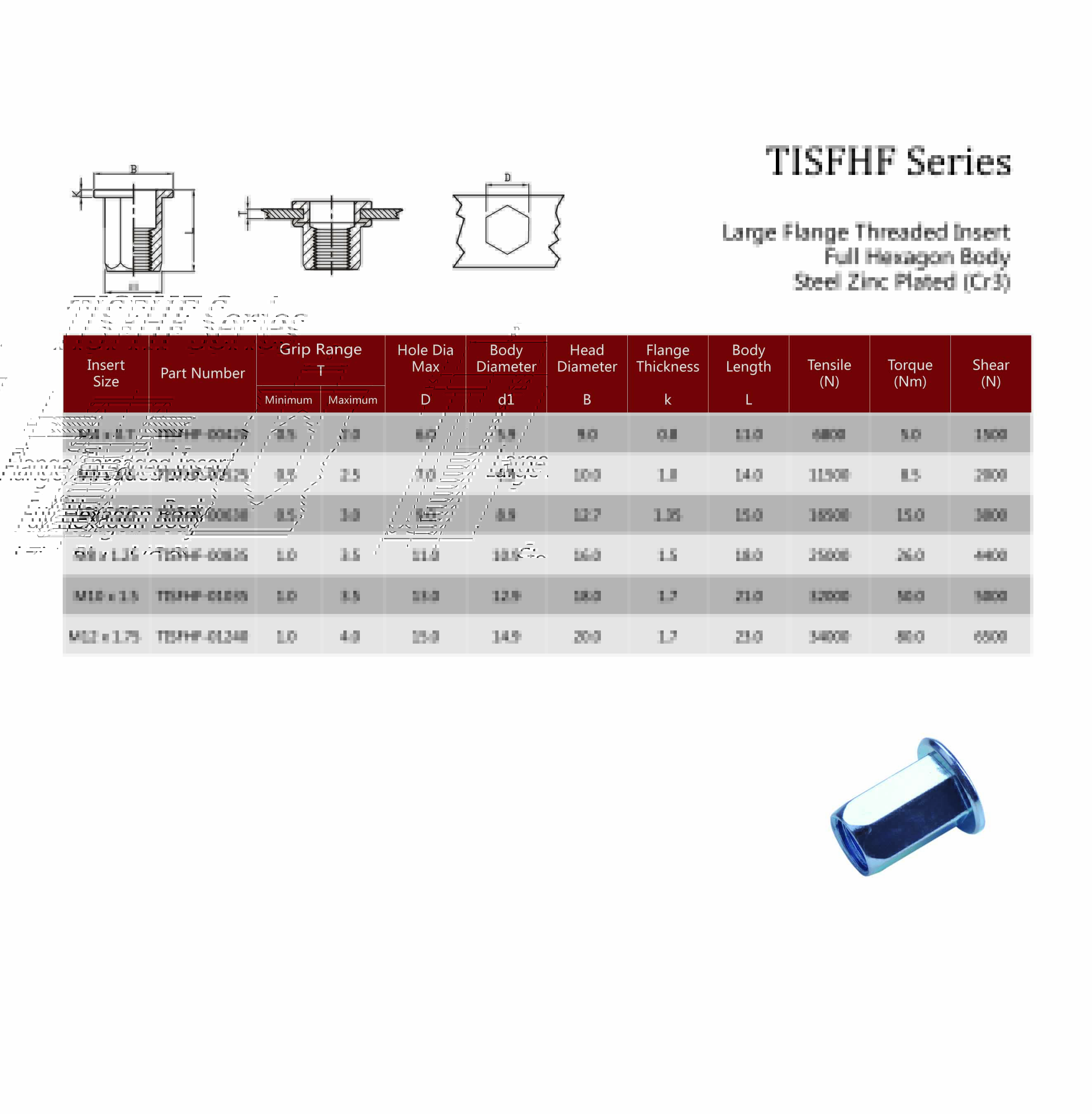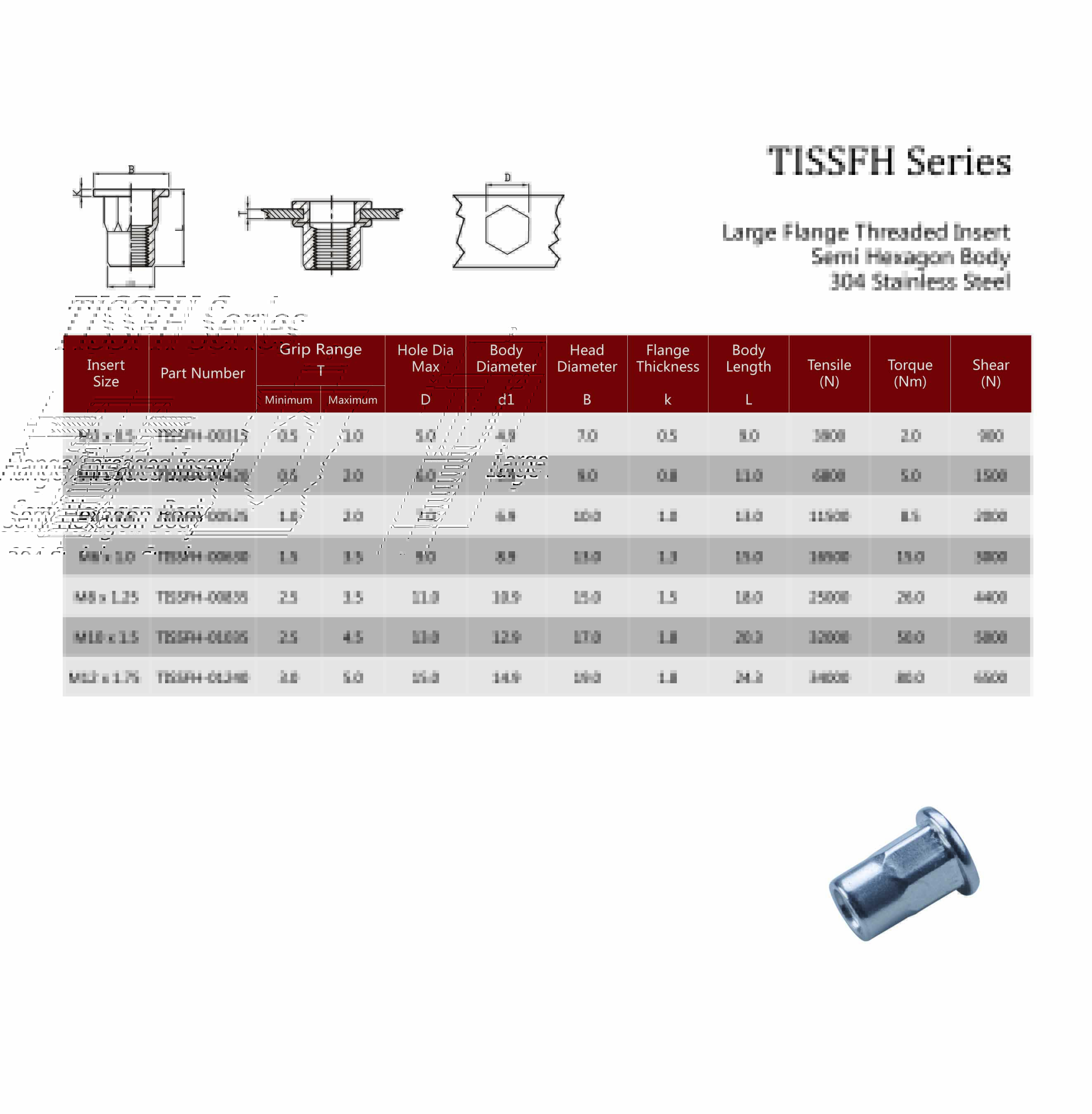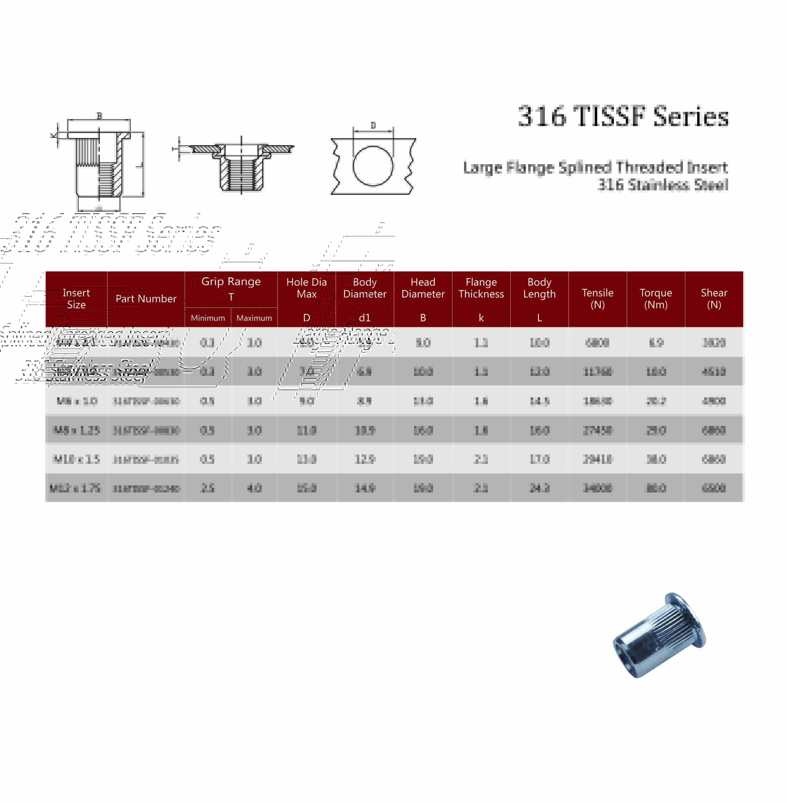 TISAL Imperial Thread / Large Flange Splined Threaded Insert