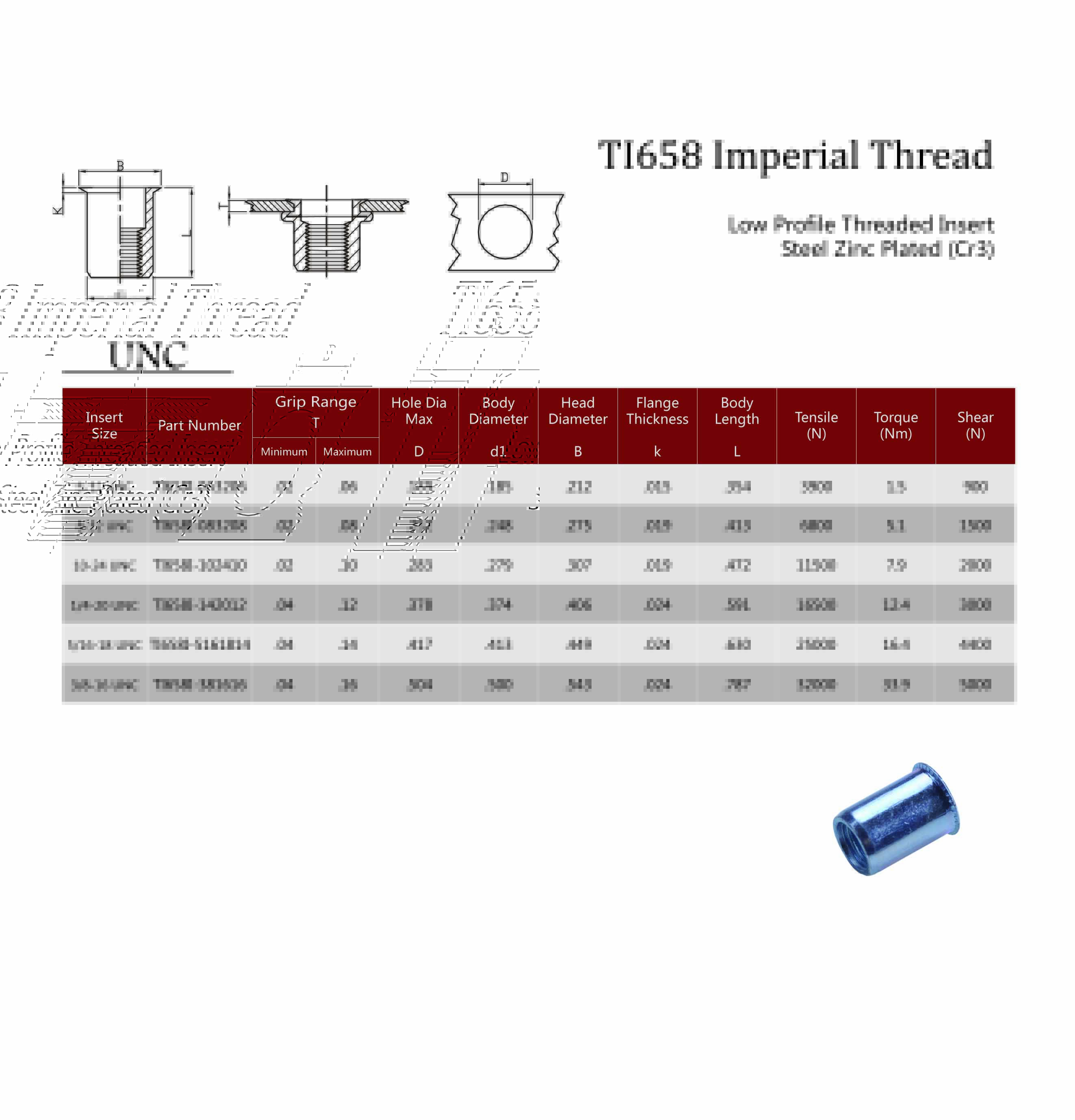 TI658 Imperial Thread / Low Profile Threaded Insert