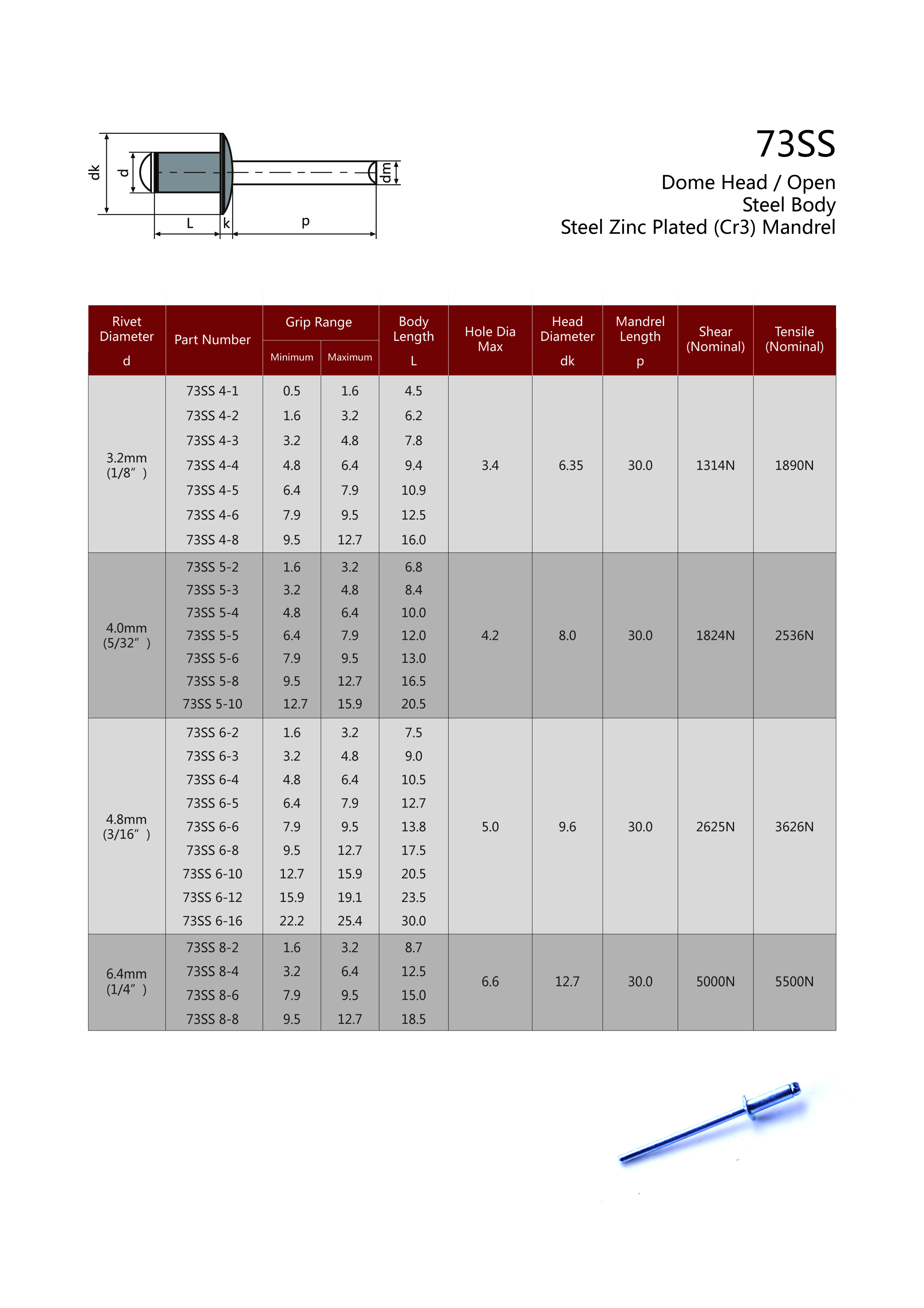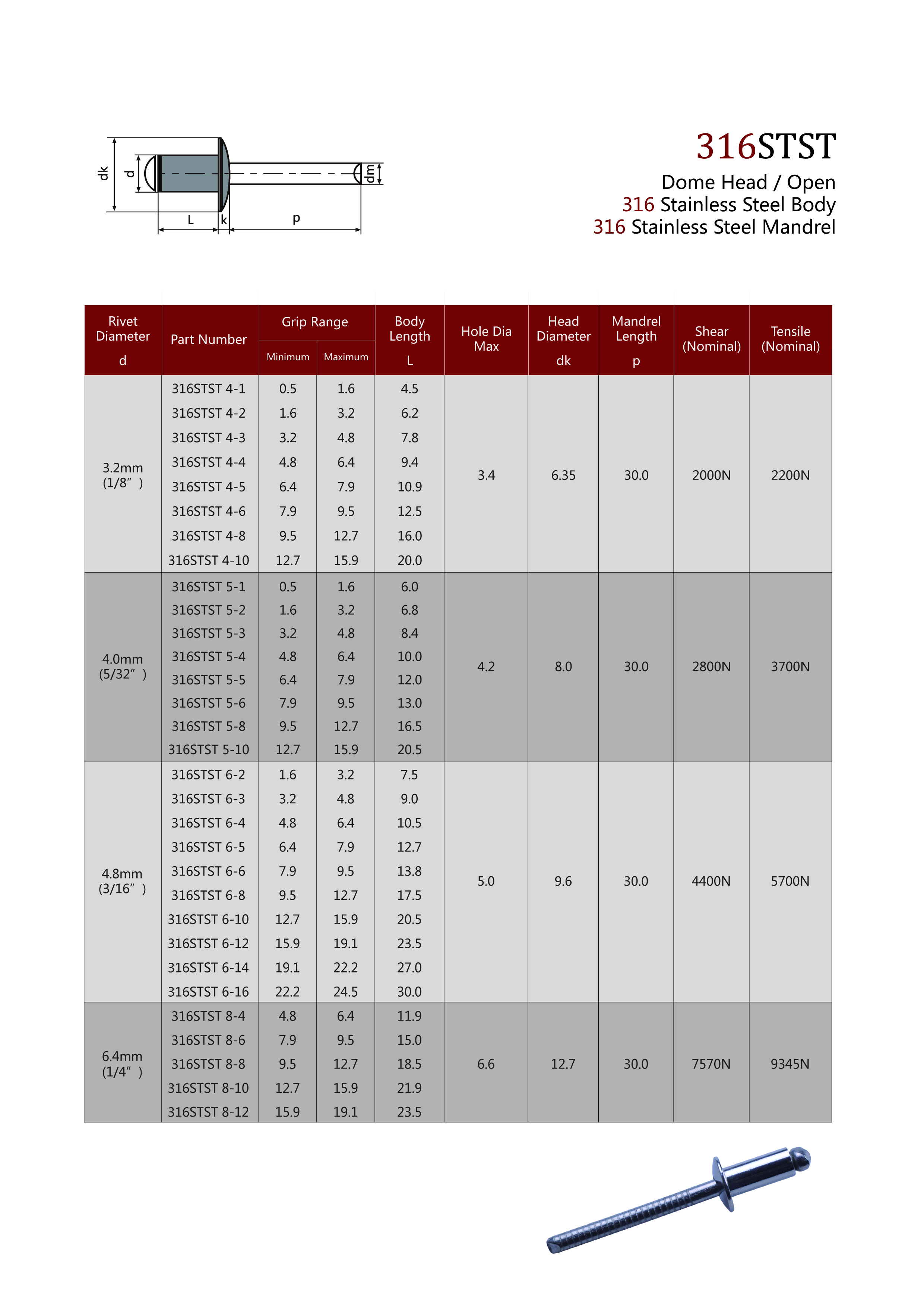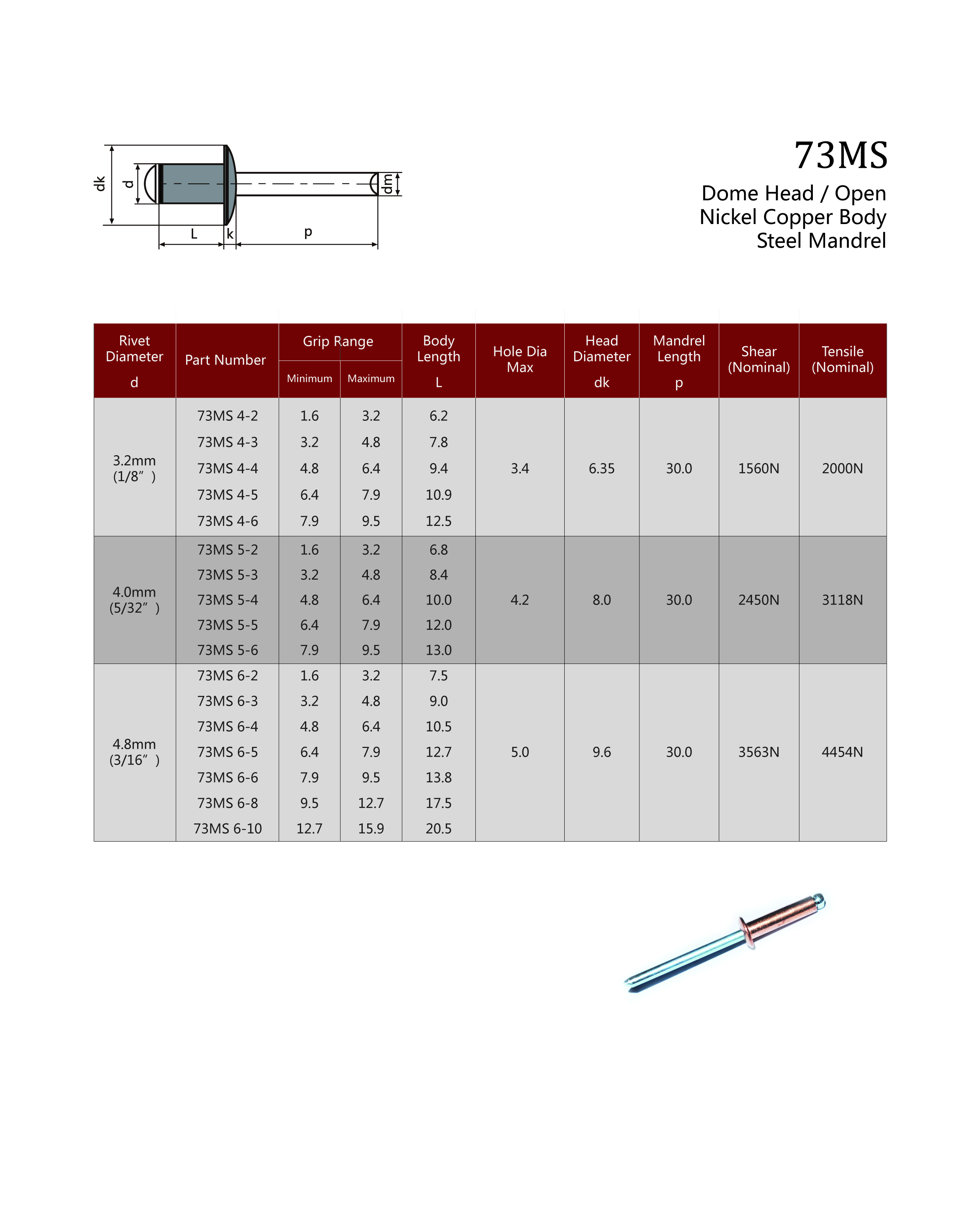 We offer a range of standard rivets in a variety of heads, materials and properties. Refer to the materials page for more information.