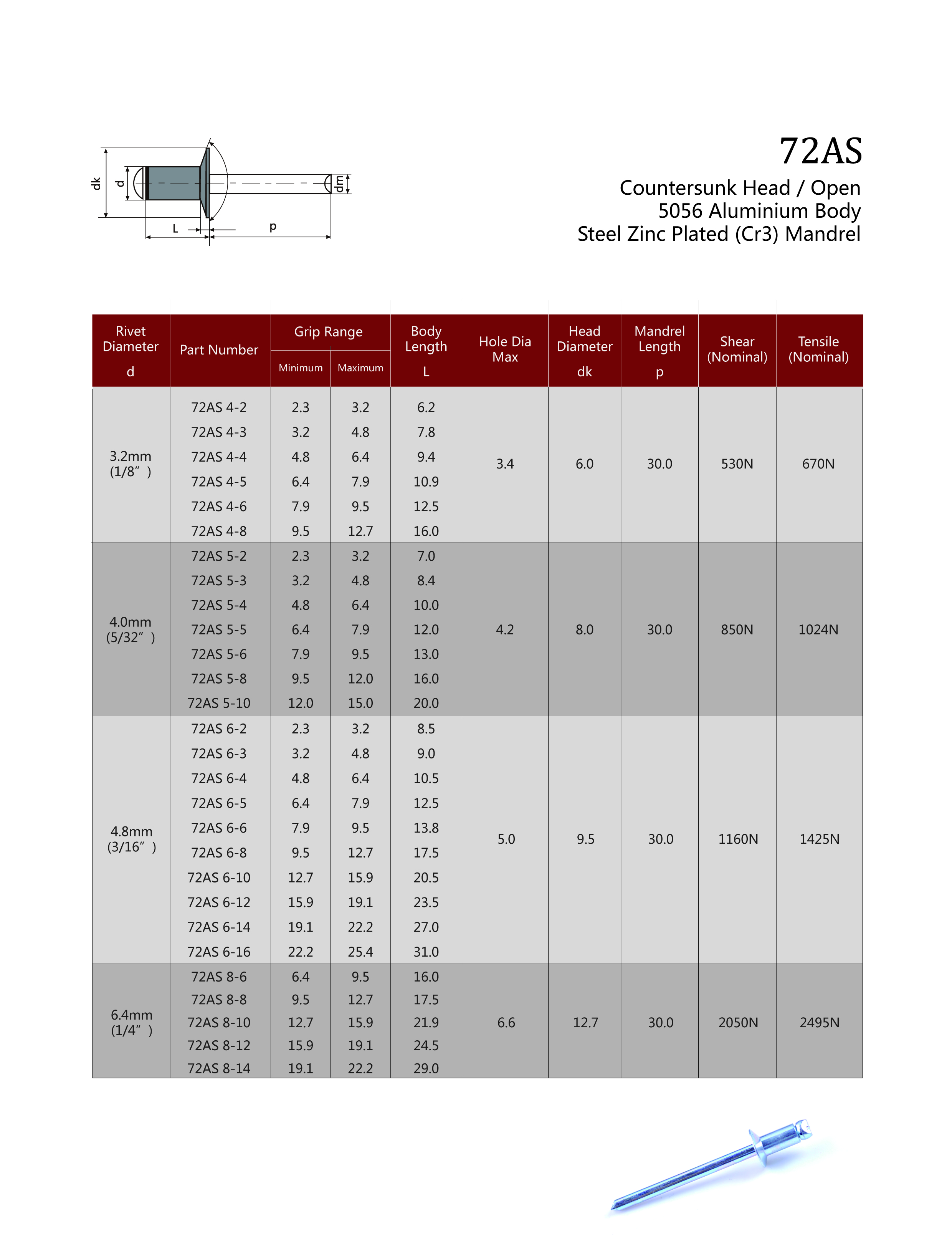 72AS Countersunk Head / Open
