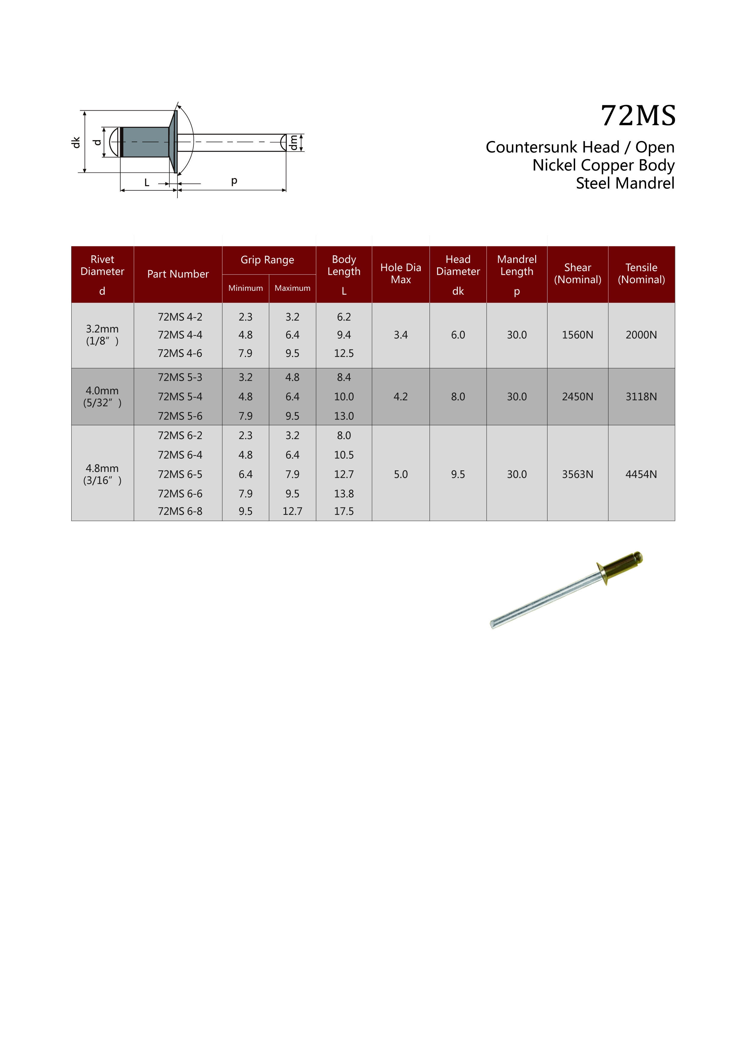 72MS Countersunk Head / Open