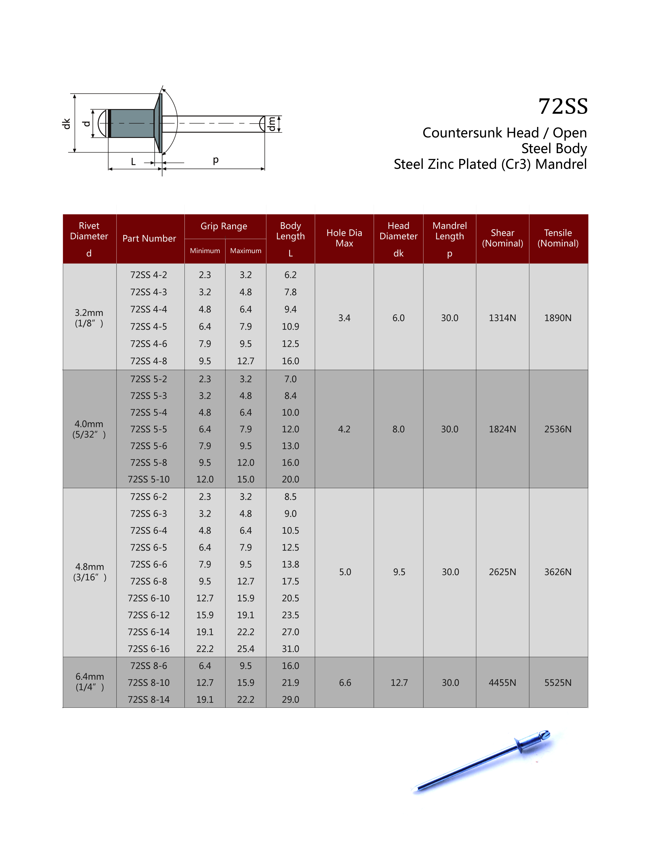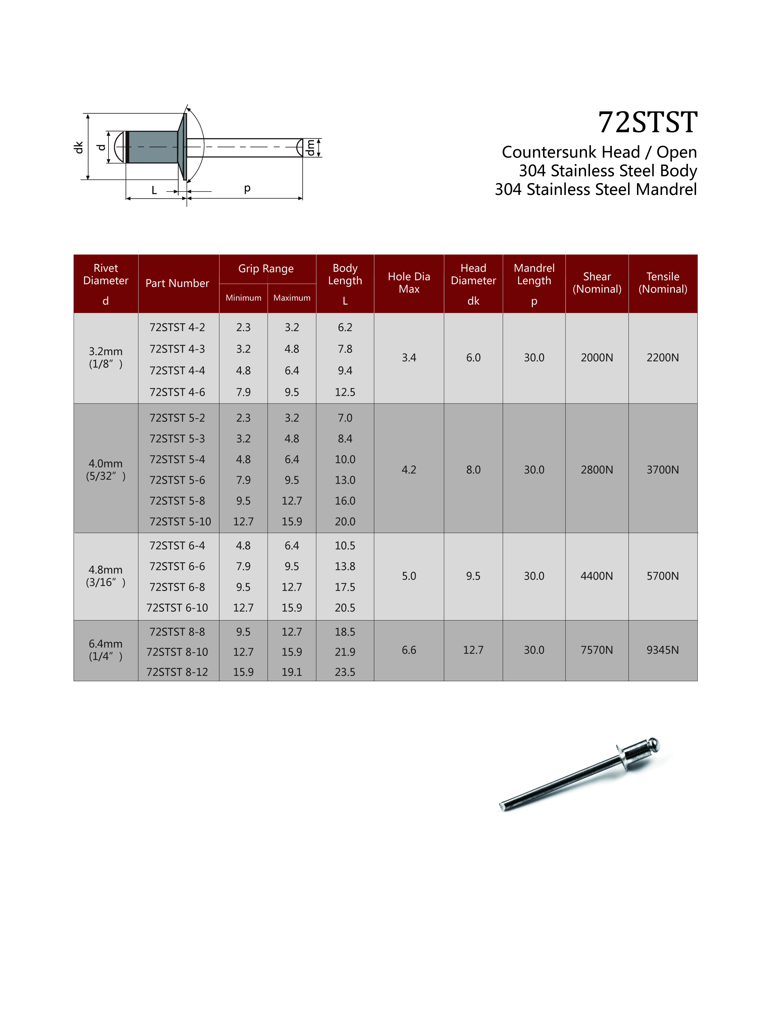 72STST Countersunk Head / Open