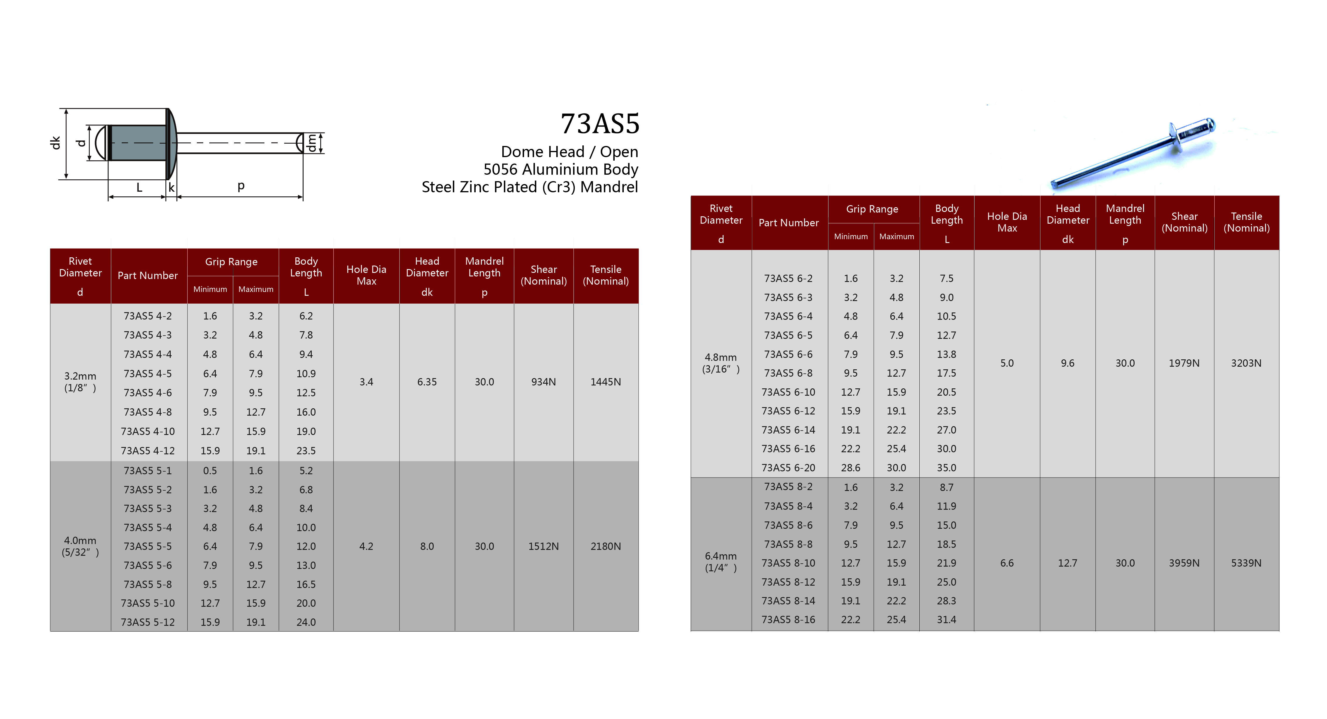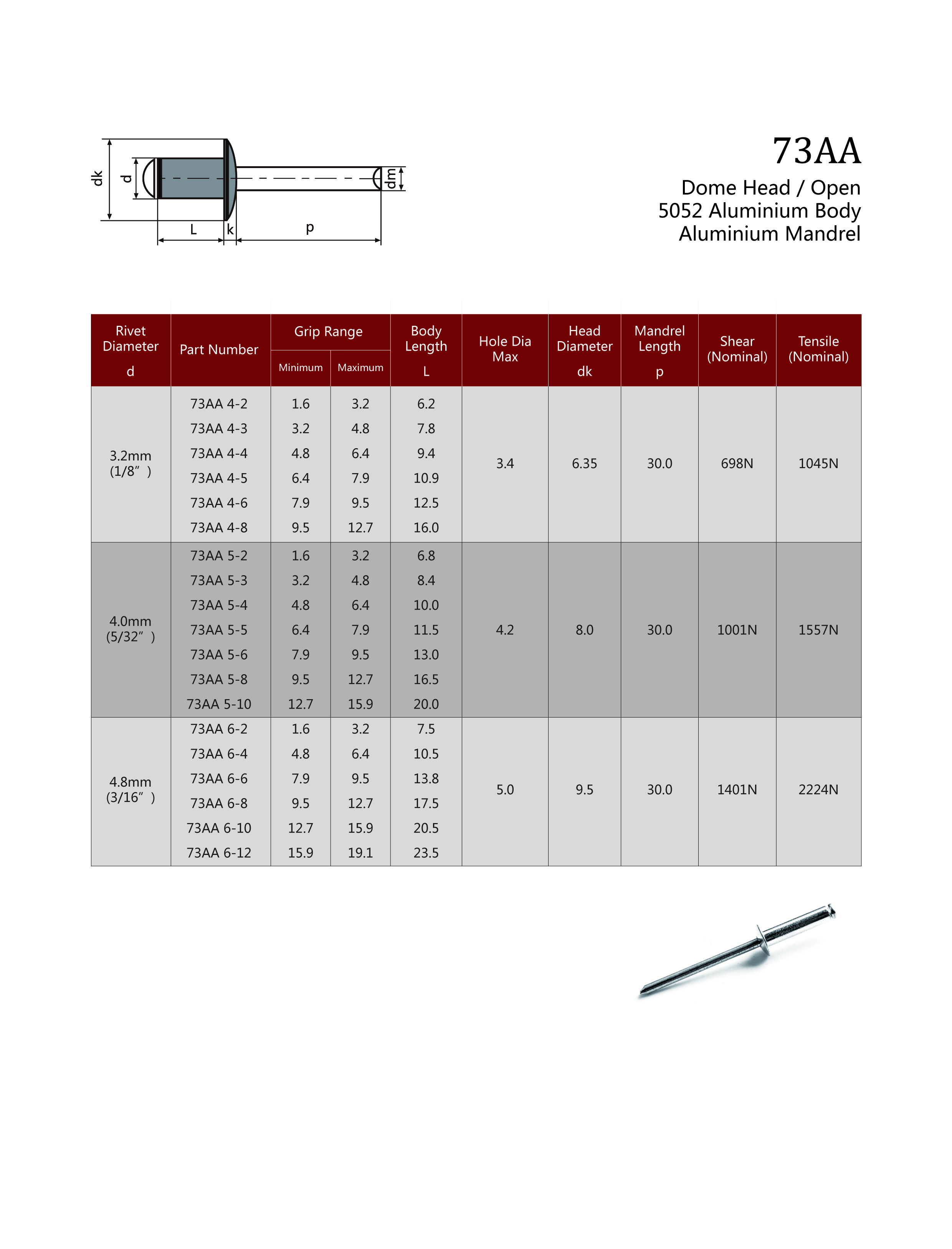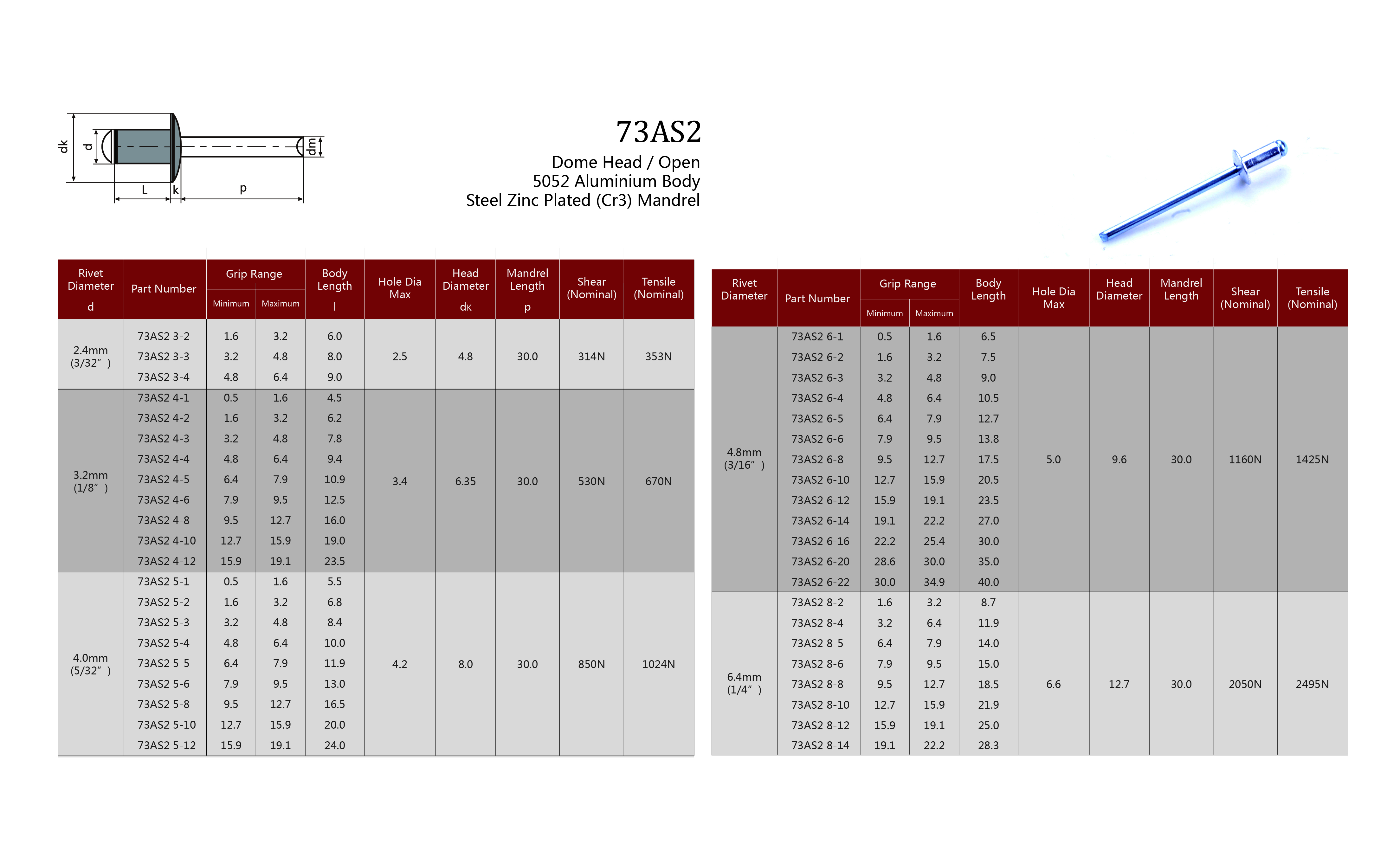 73AS2 - Dome Head Aluminium (5052) Open / Steel