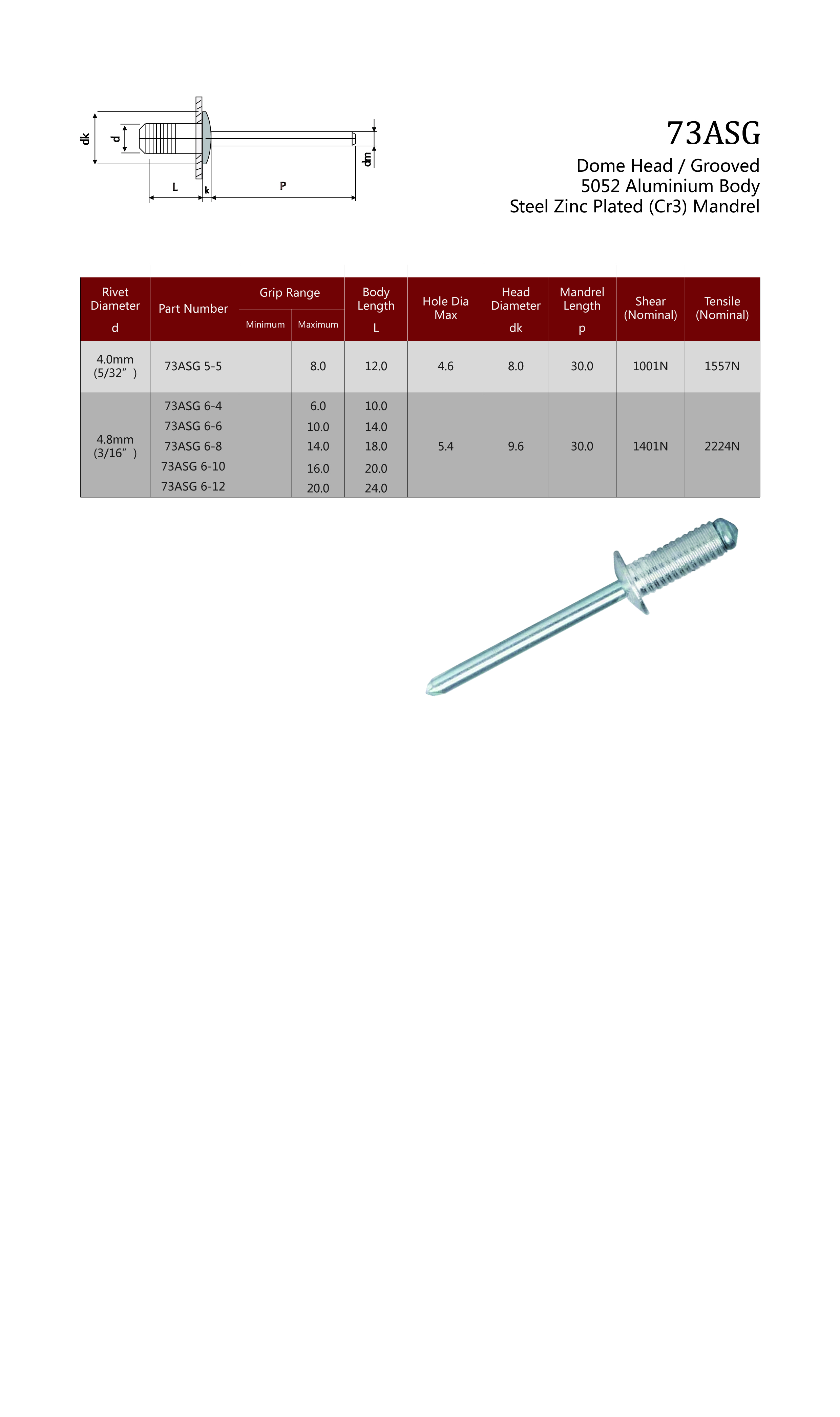 73ASG Dome Head / Grooved